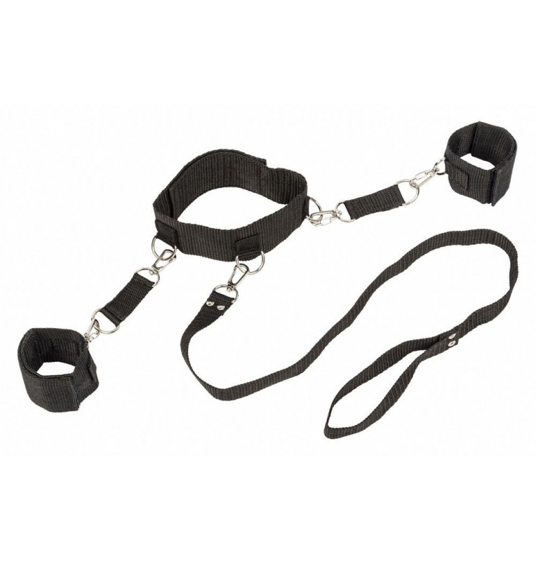 Ошейник с наручниками Bondage Collection Collar and Wristbands One Size предотвратит любое сопротивление. Ширина ошейника - 5 см., длина - 44 см. Ширина поводка - 2 см., длина - 75 см. Ширина наручников - 5 см., длина - 25 см.