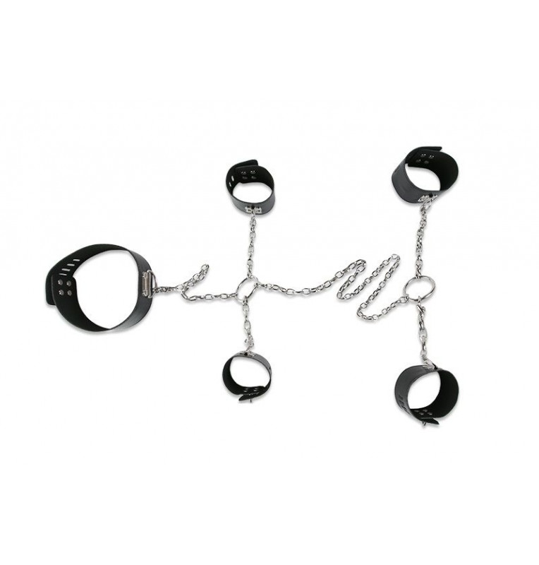 Набор для фиксации: наручники, оковы и ошейник, соединённые цепями и кольцами