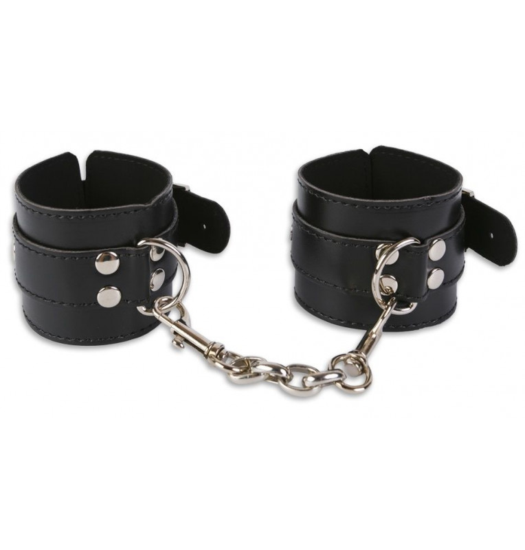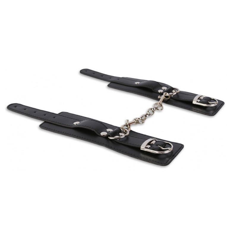 Качественный аксессуар для качественной игры БДСМ! Широкие манжеты из кожзама – универсальный элемент, который не только выполнит свои функции, но и послужит украшением. Манжеты изготовлены из качественного кожзаменителя. Края изделия отделаны контрастными швами. Сверху манжет есть ремешок с пряжкой, который одновременно выполняет декорирующую роль и регулирует аксессуар по размеру. Манжеты снабжены кольцами и карабином, что превращает их в фиксаторы для рук и ног. Длина каждой манжеты - 28 см. Ширина манжет - 6 см.