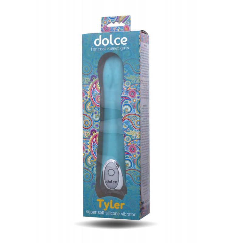 Голубой силиконовый вибратор Dolce Tyler - 16,5 см.