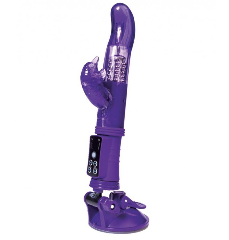 Фиолетовый вибратор с клиторальным стимулятором и супер надёжной присоской