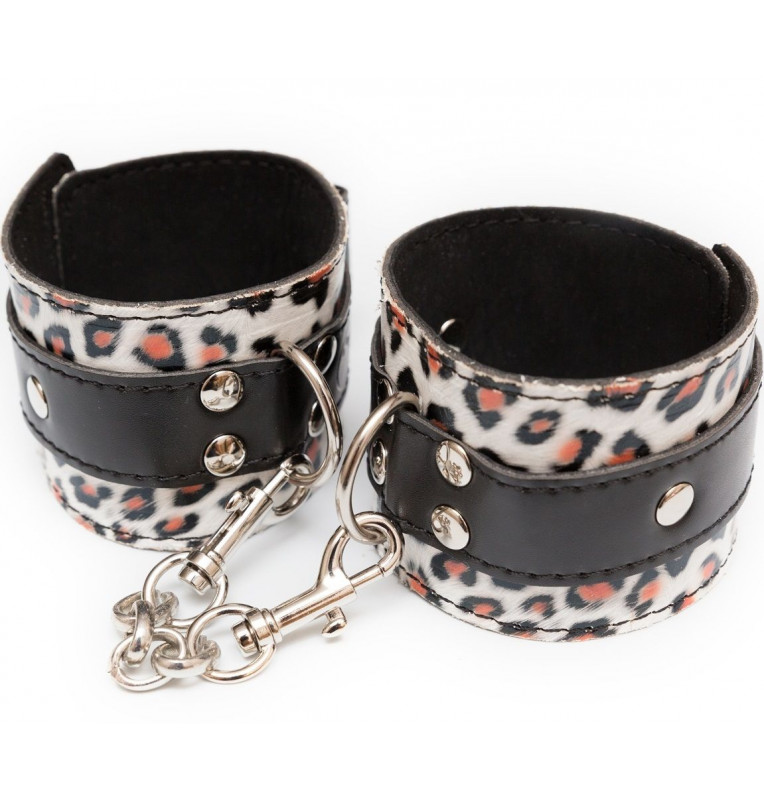 Наручники леопардовой расцветки с карабинами