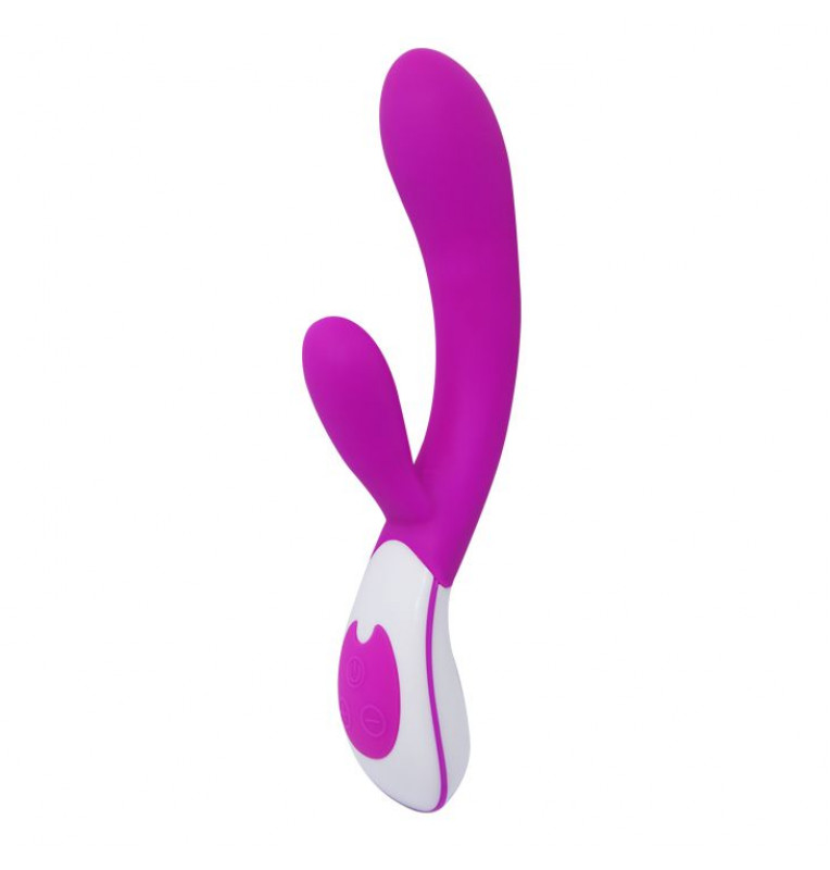 Розовый вибромассажёр Colby с клиторальным стимулятором. 12 функций вибрации. Перезаряжаемый. Основной отросток чуть загнут для лучшего воздействия на точку G.