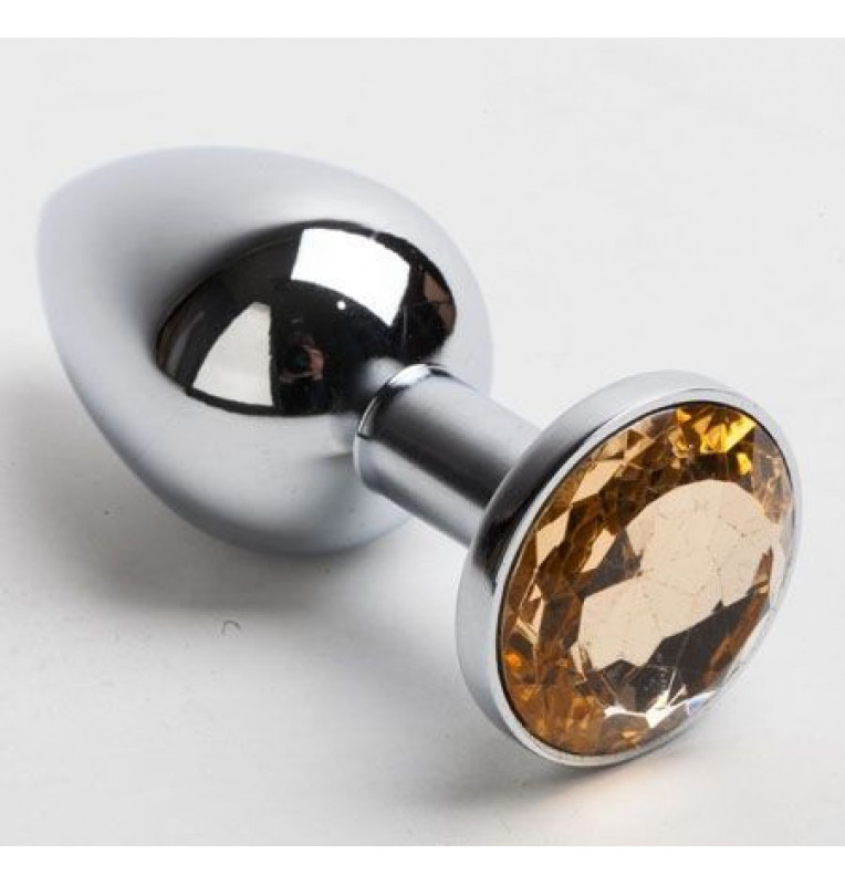 Серебристая анальная пробка с желтым кристаллом - 8,2 см.