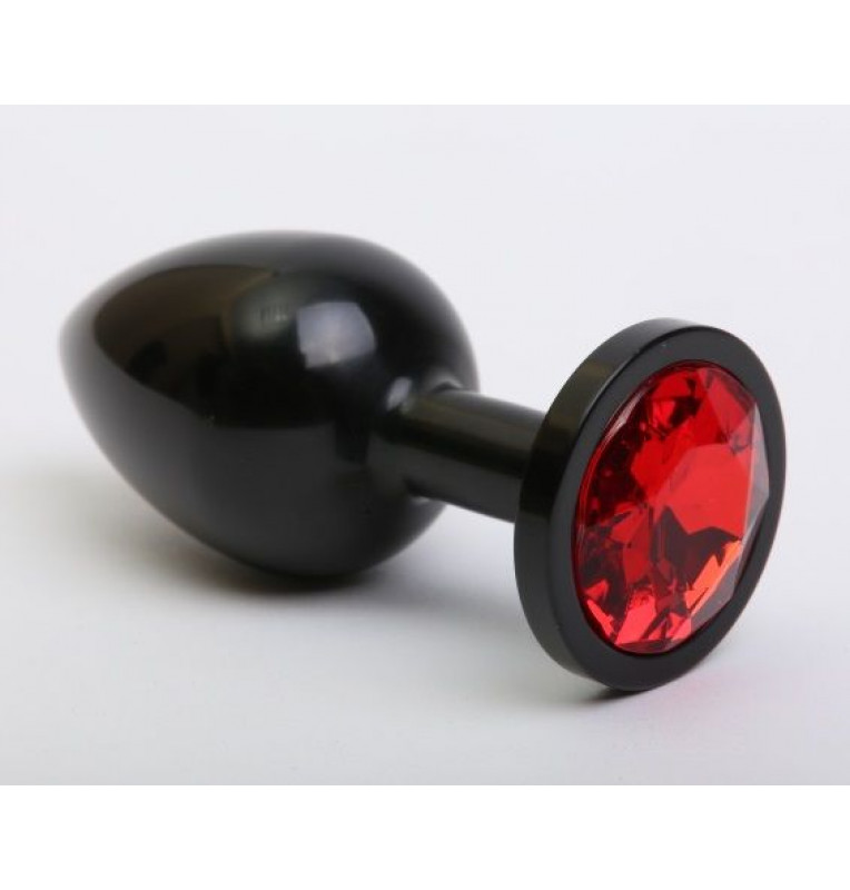 Чёрная анальная пробка с красным стразом - 7,6 см.