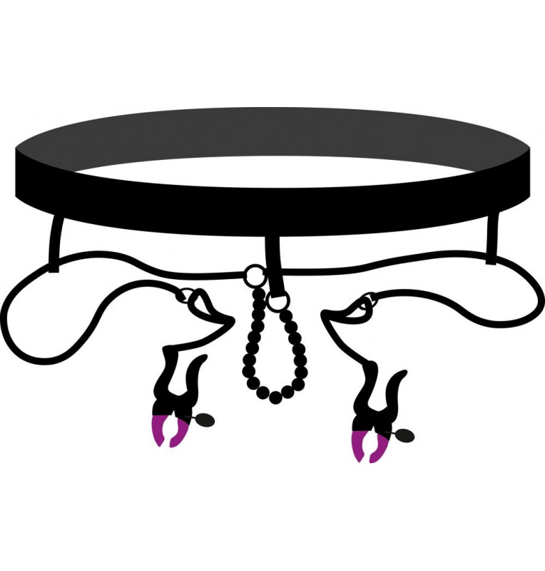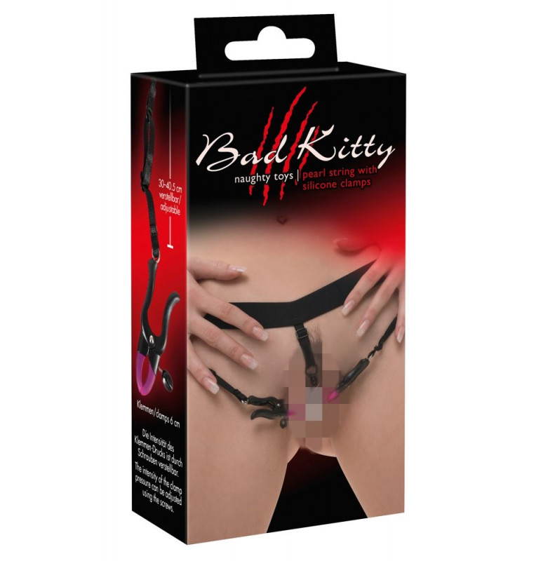Трусики с зажимами для половых губ и бусинками для массажа промежности. Длина зажимов - 6 см.