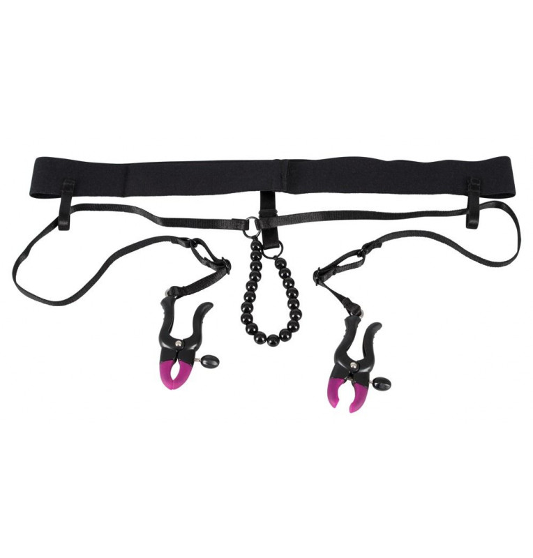 Трусики с зажимами для половых губ и бусинками для массажа промежности