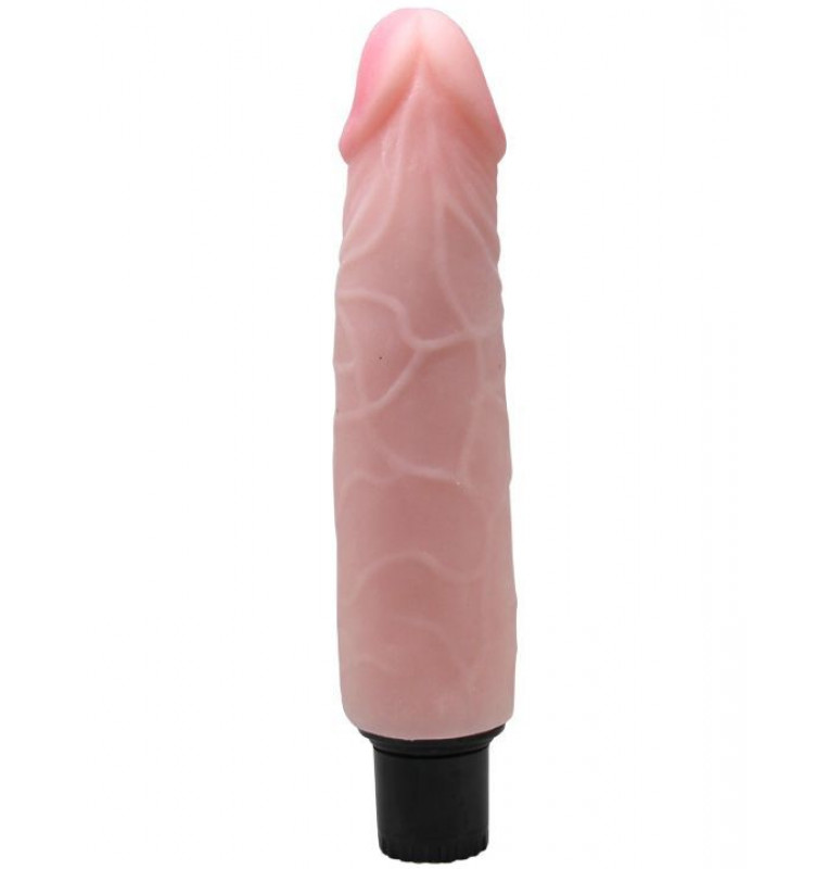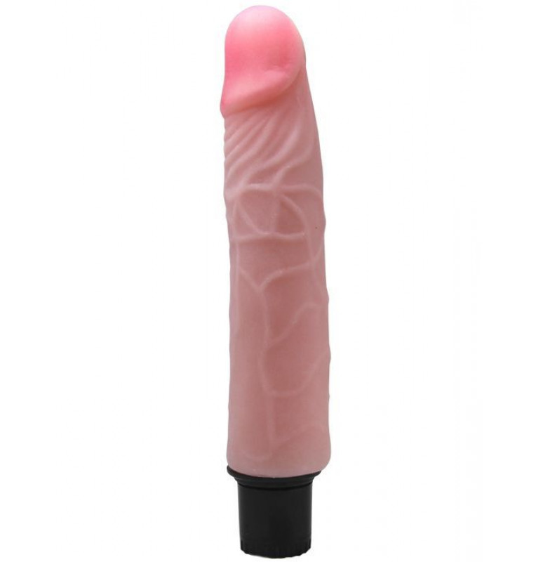 Телесный вибратор с розовой головкой из ультраскин - 20 см.
