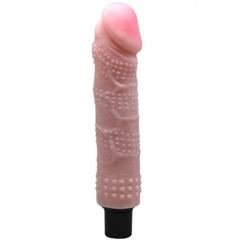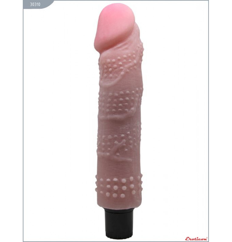 Телесный вибратор из ультраскин с точками по всей длине - 24 см.