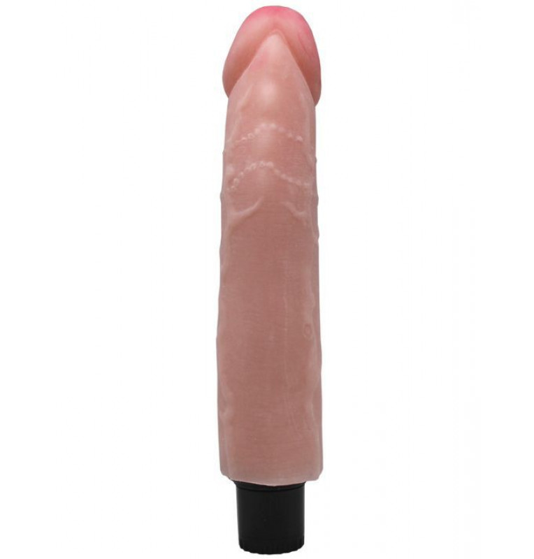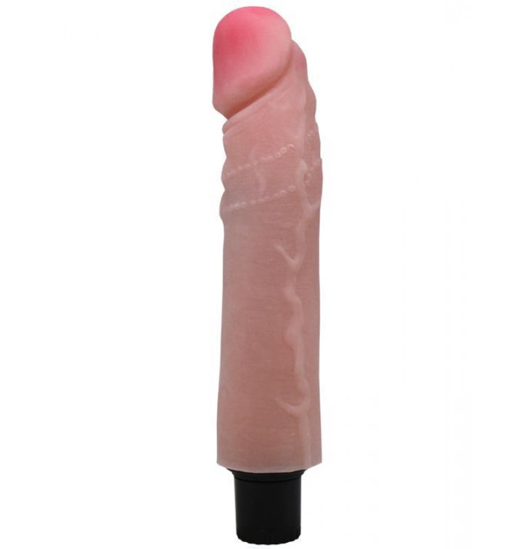 Телесный вибратор с бороздками и шишечками на стволе - 23 см.