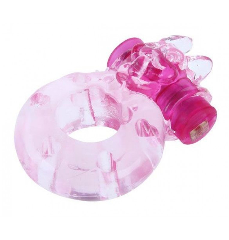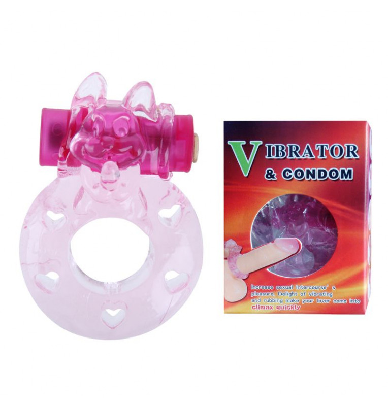 Розовое эрекционное виброкольцо с котом
