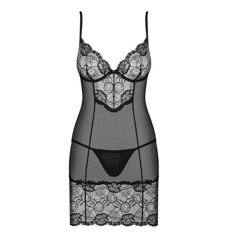 Полупрозрачная сорочка Alluria с кружевами. В комплекте: сорочка, трусики-стринги.