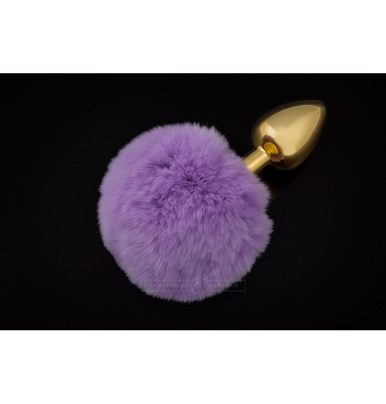 Маленькая золотистая пробка с пушистым фиолетовым хвостиком