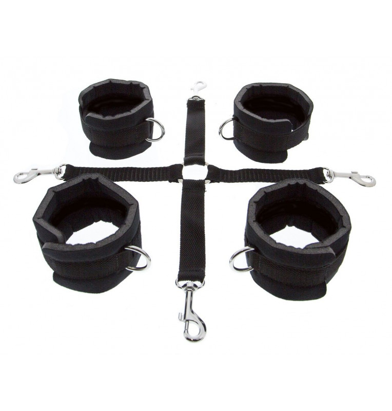 Регулируемые мягкие манжеты на запястья и лодыжки с соединительной крестовиной Hog Tie Cuff Set.