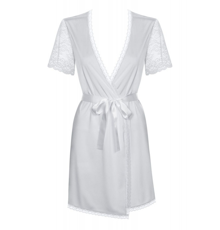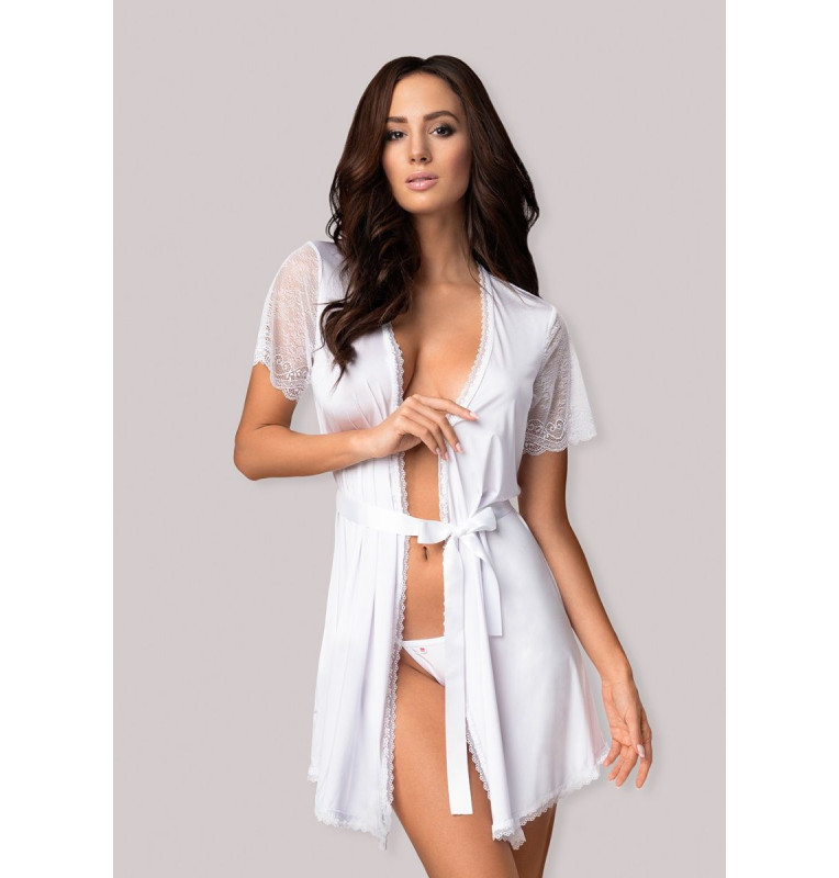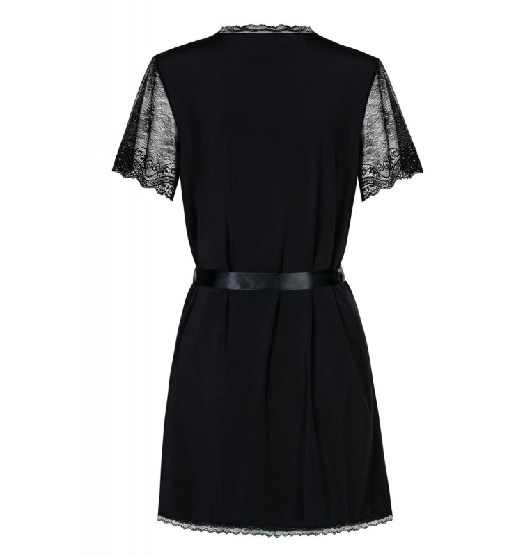 Вкусной конфетке нужна привлекательная обёртка. Этот пеньюар из стрейч-атласного материла и станет таковой: укроет ваше знойное тело от любопытных глаз и вызовет желание поскорее заключить вас в объятия. Небольшая длина, подчеркивающая красоту ног, строгий черный цвет, отсутствие воротничка, длинный пояс из атласной ленточки, кружевная оторочка, рукавчики из ажурного полотна – ням-ням! Трусики-стринги в комплекте. В комплекте: пеньюар, трусики-стринги.