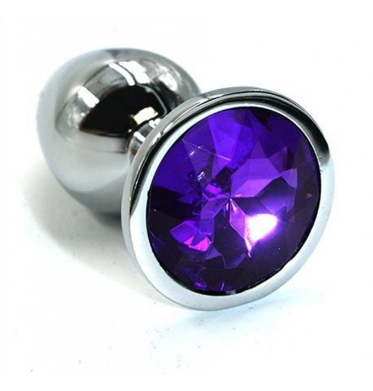 Анальная пробка из алюминия размер S. Страз в основании круглой формы, выполнен из стекла темно-фиолетового цвета. Упакована в вельветовый мешочек для хранения. Вес - 52 гр.