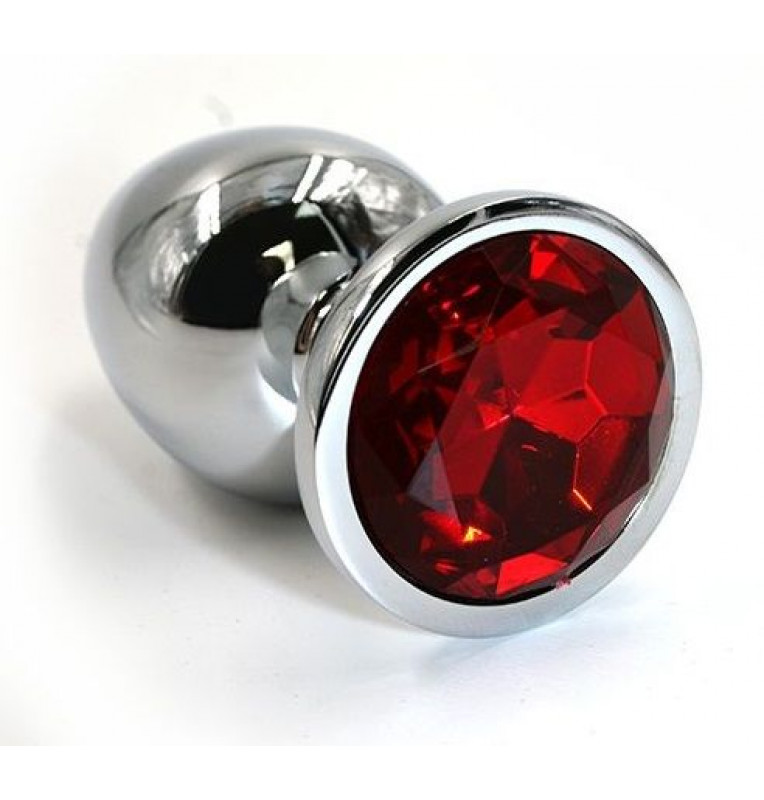 Анальная пробка из алюминия размер M. Страз в основании круглой формы, выполнен из стекла красного цвета. Упакована в вельветовый мешочек для хранения. Вес - 82,5 гр.