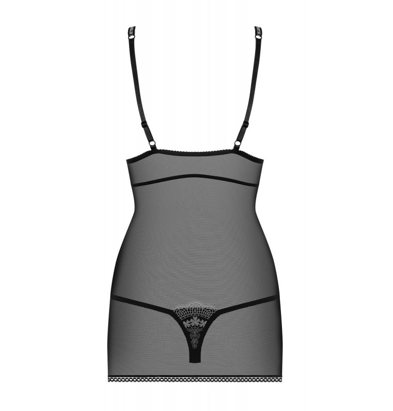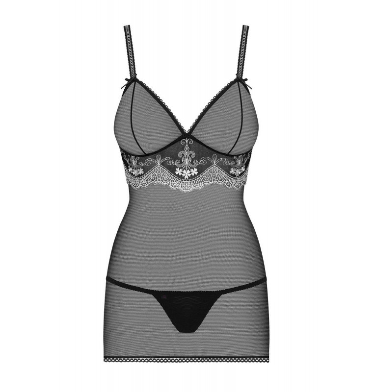 Полупрозрачная сорочка с кружевным декором под лифом. В комплекте: сорочка, трусики-стринги.