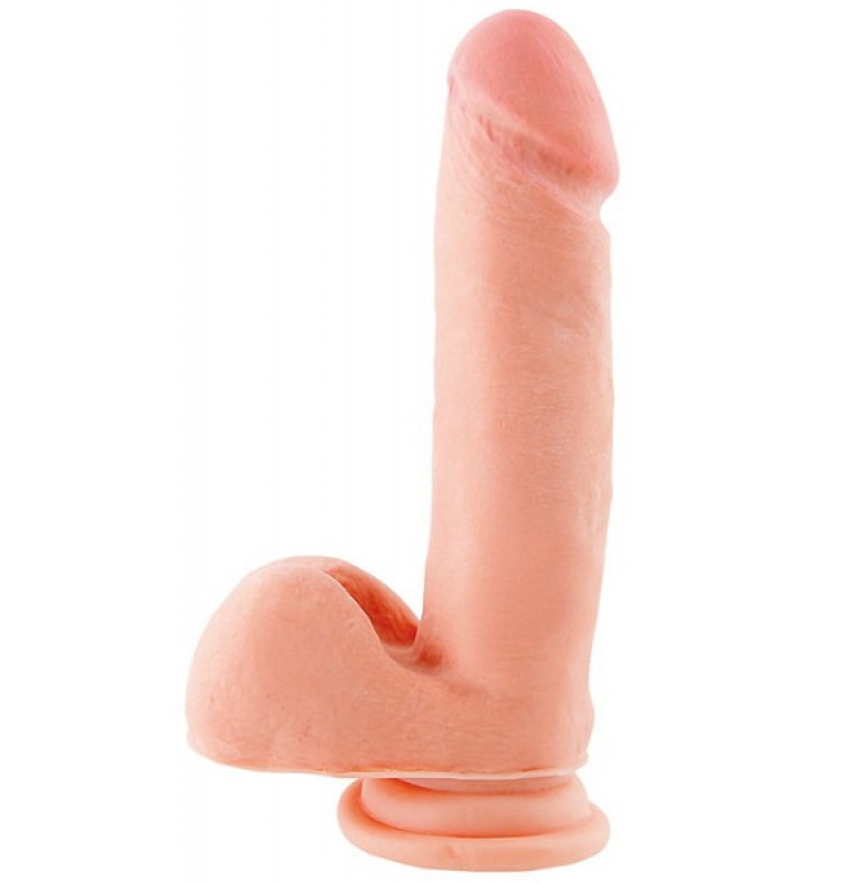 Телесный фаллоимитатор с мошонкой на присоске - 17 см.