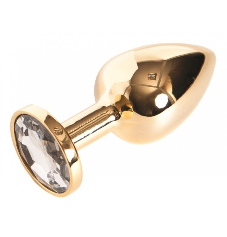 Золотистая маленькая анальная втулка с прозрачным кристаллом - 6 см.