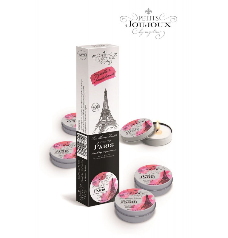 Чувственный массаж - лучшее начало эротического вечера! Просто подождите, пока массажная свеча расплавится и превратит воск в массажное масло, аромат Petits Joujoux Paris наполнит комнату свежестью, и наслаждайтесь волнующим массажем! Масло разогревается, но не обжигает - распаляя ваши тела и пробуждая желание! Воск на основе натуральных ингредиентов (масло жожоба, масло дерева ши, оливковое масло, кокосовое масло) прекрасно ухаживает за вашей кожей, увлажняет ее и придает телу приятный нежный аромат. Время горения каждой свечи - 6 часов. В упаковке 5 свечей по 33 гр. каждая.