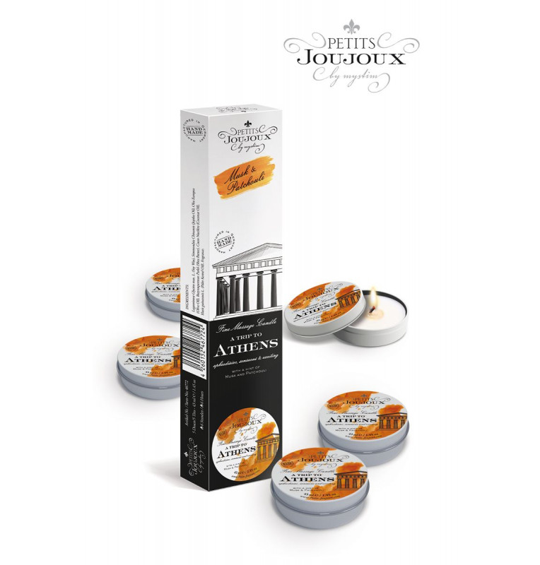 Чувственный массаж - лучшее начало эротического вечера! Просто подождите, пока массажная свеча расплавится и превратит воск в массажное масло, аромат Petits Joujoux Athens наполнит комнату свежестью, и наслаждайтесь волнующим массажем! Масло разогревается, но не обжигает - распаляя ваши тела и пробуждая желание! Воск на основе натуральных ингредиентов (масло жожоба, масло дерева ши, оливковое масло, кокосовое масло) прекрасно ухаживает за вашей кожей, увлажняет ее и придает телу приятный нежный аромат. Время горения каждой свечи - 6 часов. В упаковке 5 свечей по 33 гр. каждая.