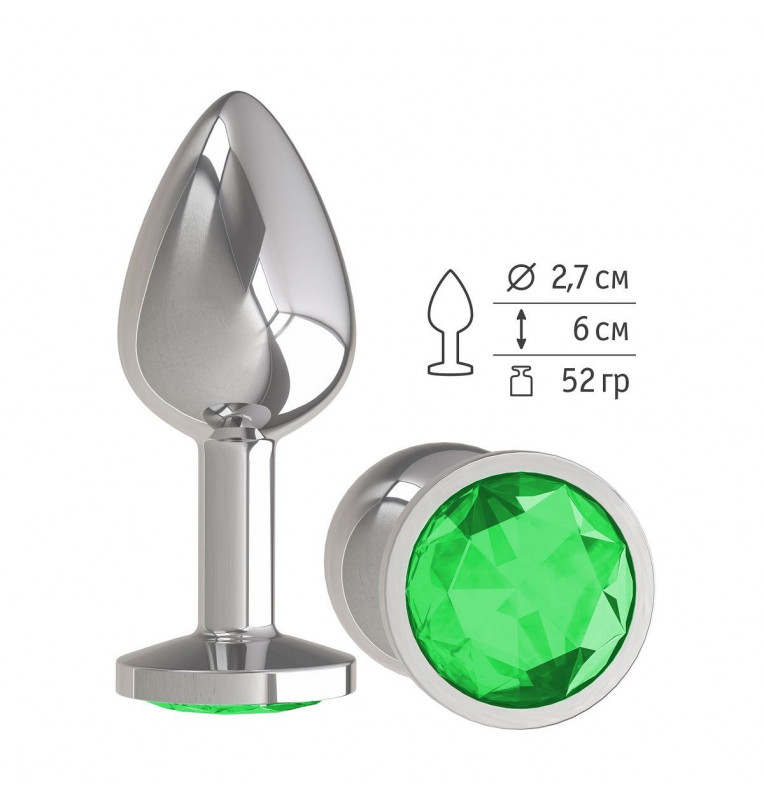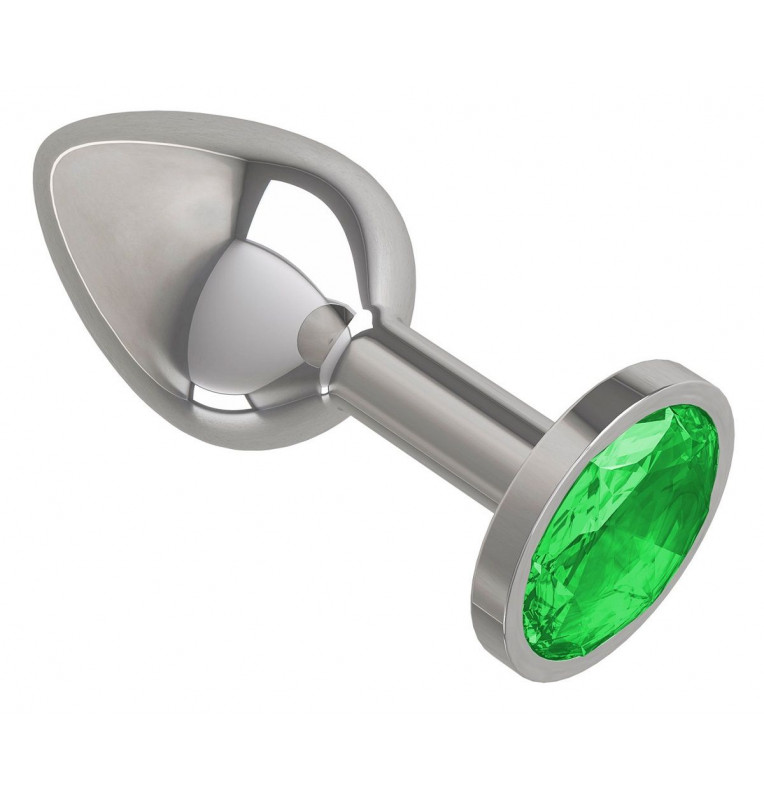 Серебристая анальная втулка с зеленым кристаллом - 7 см.