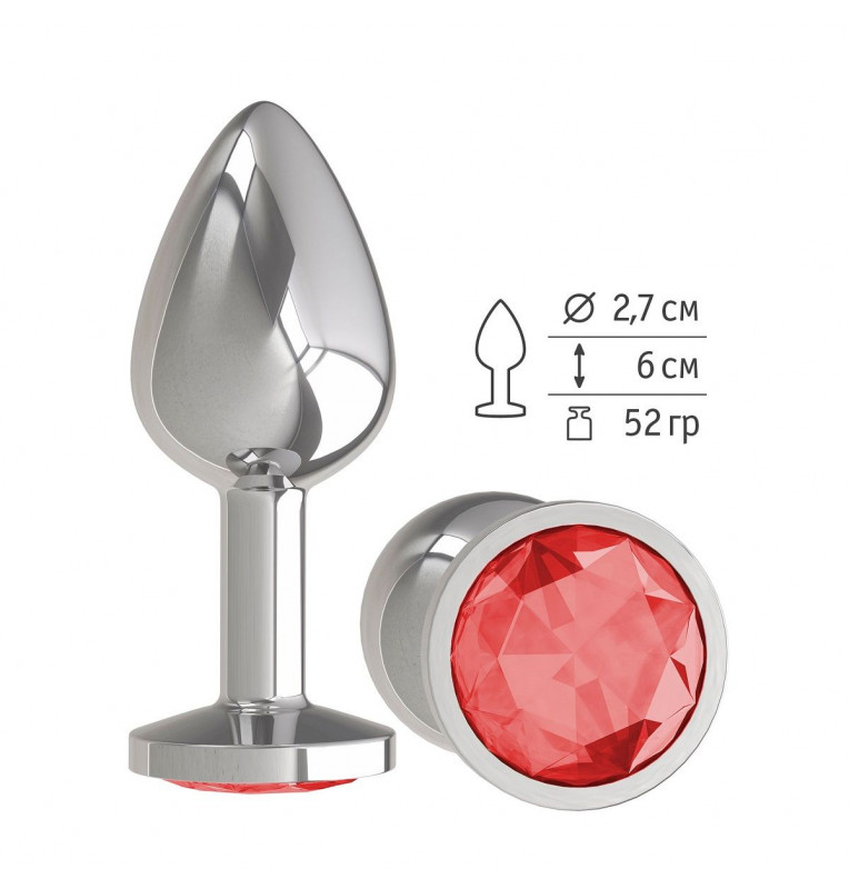 Серебристая анальная втулка с красным кристаллом - 7 см.