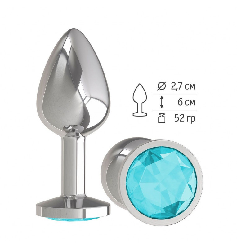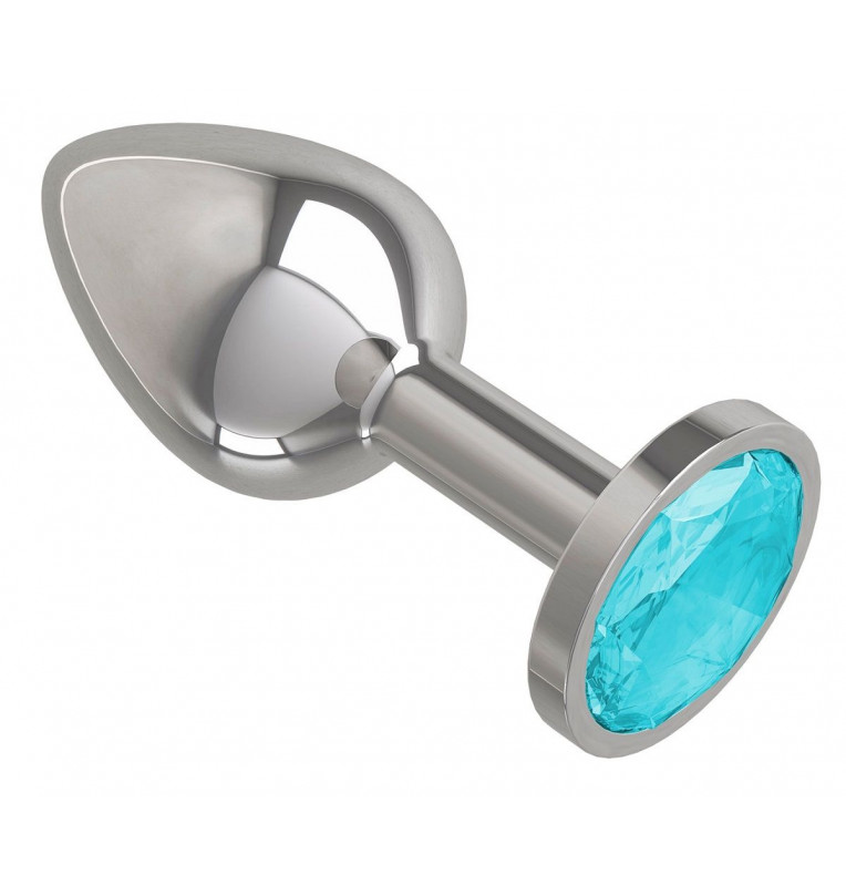 Серебристая анальная втулка с голубым кристаллом - 7 см.