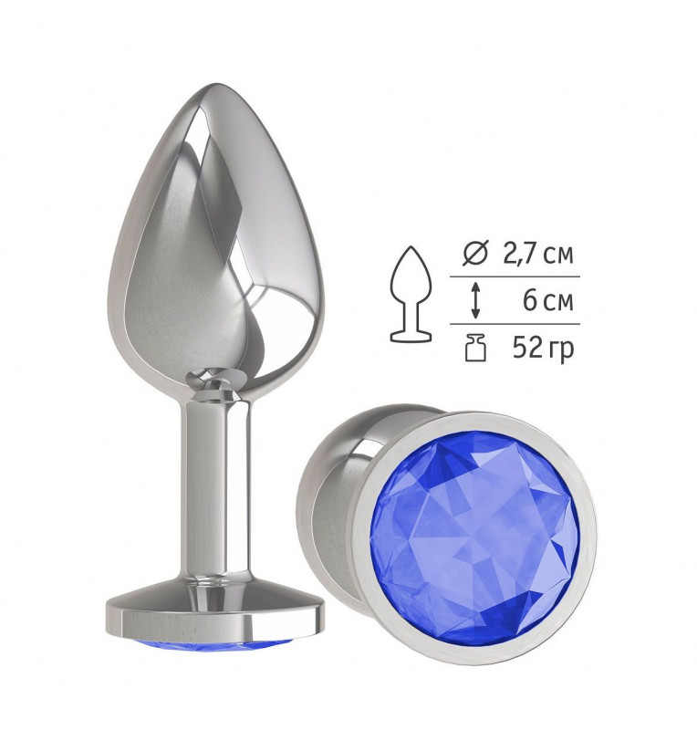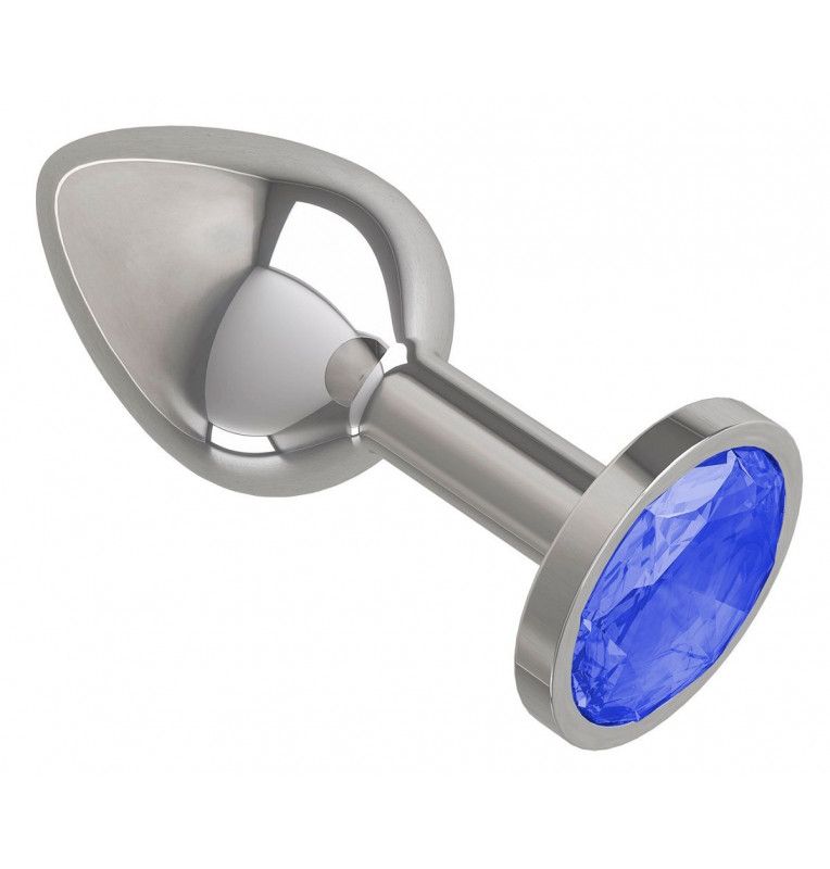 Серебристая анальная втулка с синим кристаллом - 7 см.