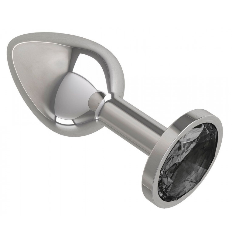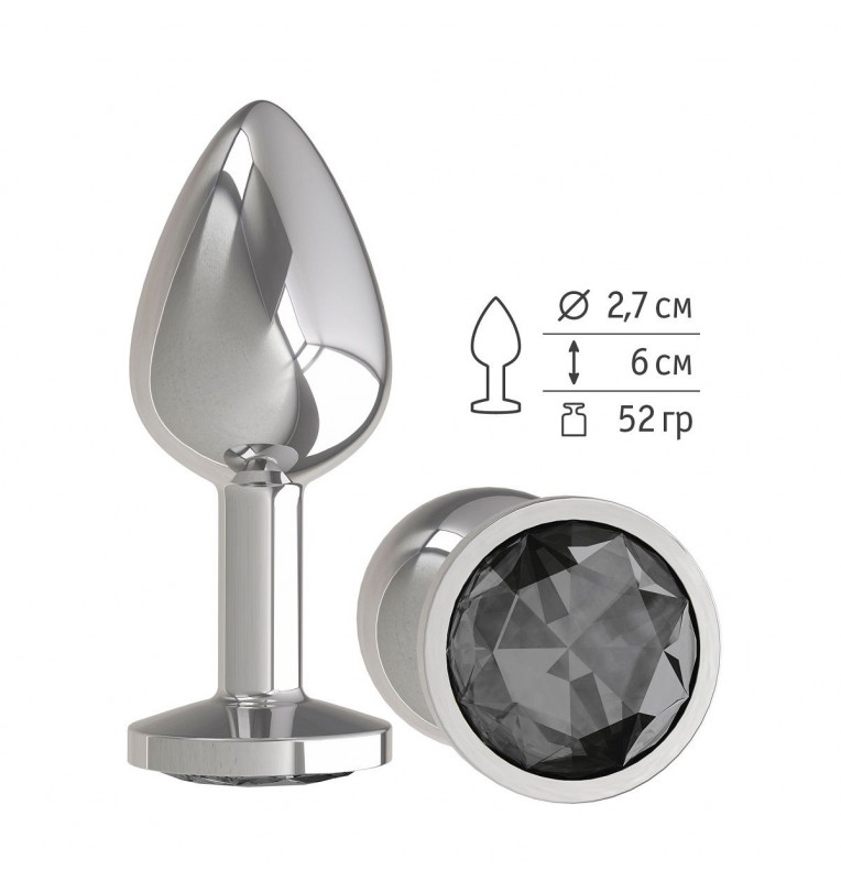 Серебристая анальная втулка с чёрным кристаллом - 7 см.