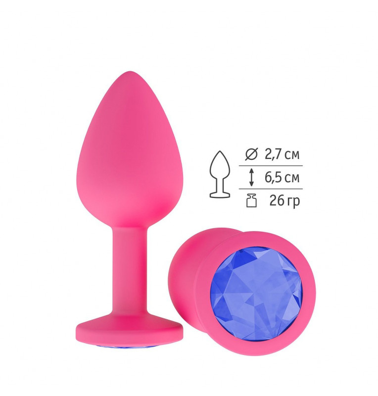 Розовая анальная втулка с синим кристаллом - 7,3 см.